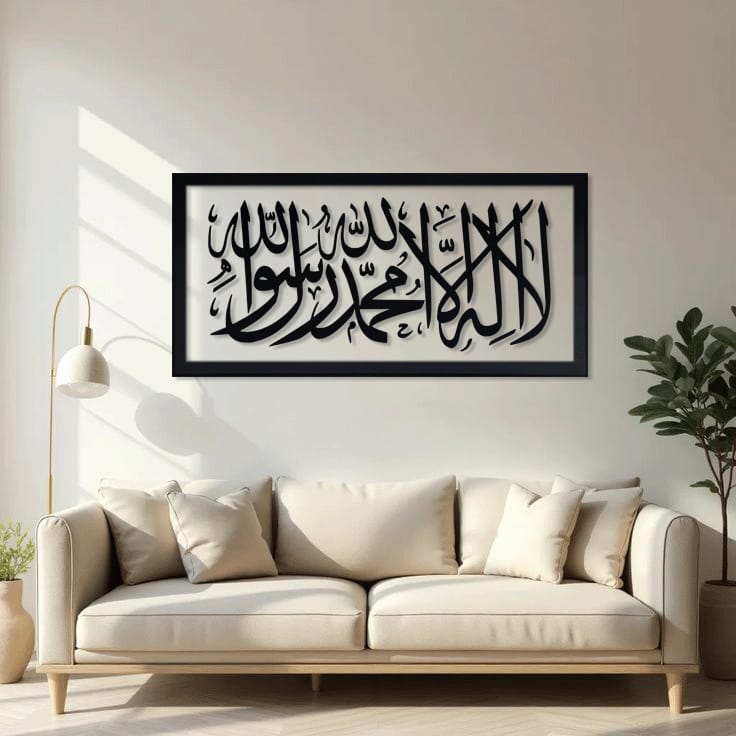 لا إِلٰهَ إِلَّا اللّه مُحَمَّدٌ رَسُولُ اللّه – إعلان التوحيد والرسالة في لوحة مركزية مميزة (155 × 55 سم)